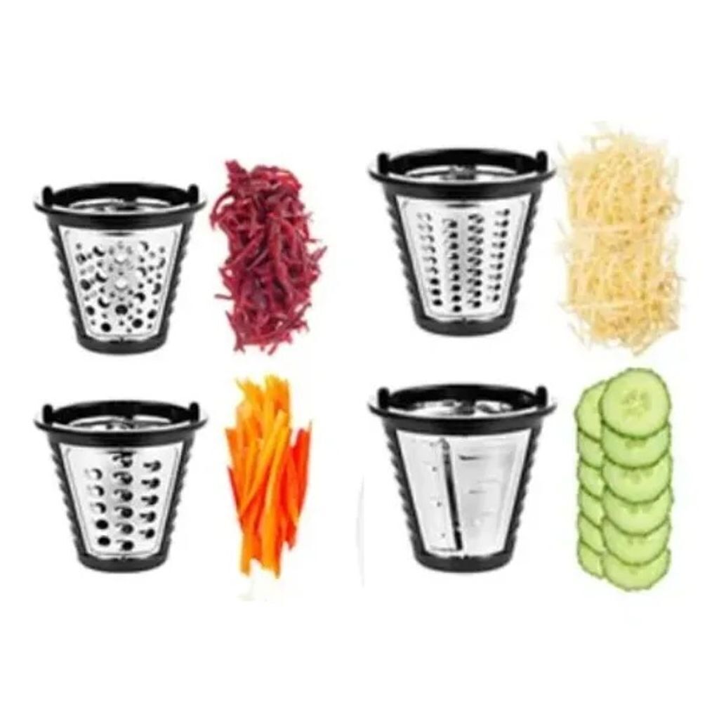 Multi-Rallador Rebanador Grate Easy de Liliana, modelo ASM112, es la solución perfecta para simplificar tus tareas en la cocina! Con sus 4 conos intercambiables, este práctico electrodoméstico te permite rebanar y rallar alimentos de manera rápida y eficiente, ideal para preparar ensaladas, guarniciones, postres y más.